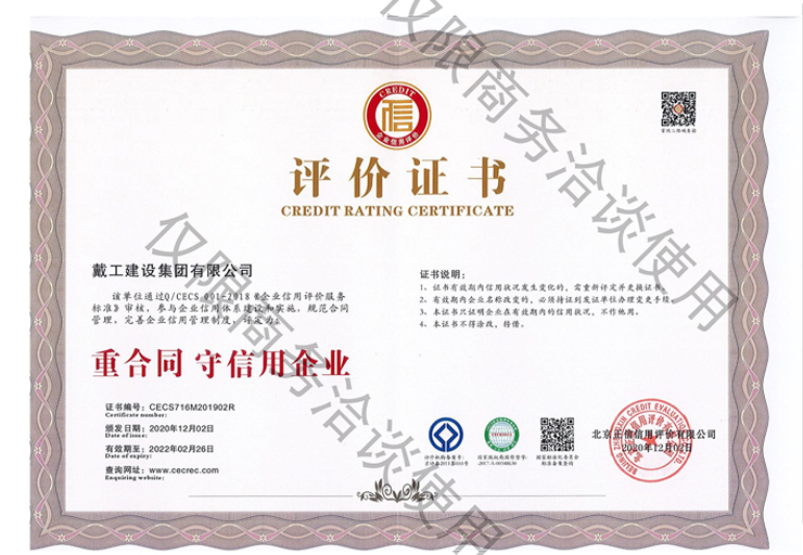 重合同守信用企業(yè)評(píng)價(jià)證書