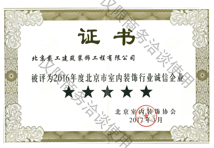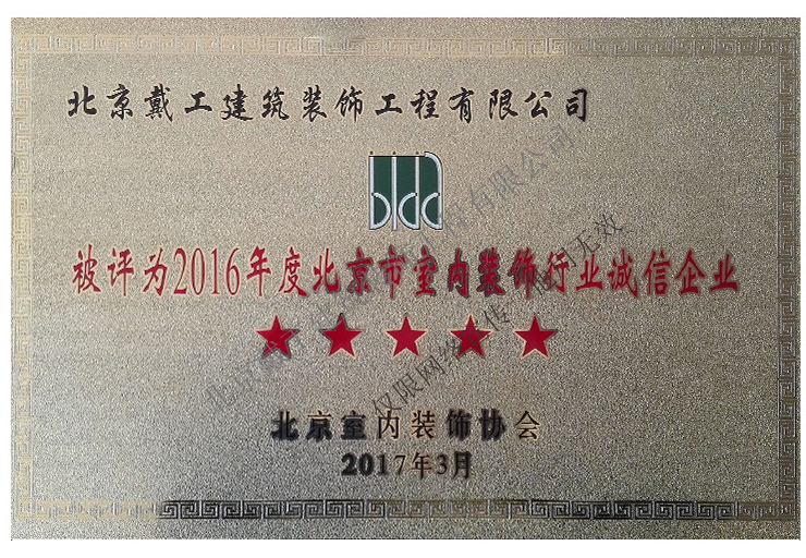2016年度北京市室內(nèi)裝飾行業(yè)誠(chéng)信企業(yè)