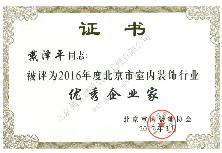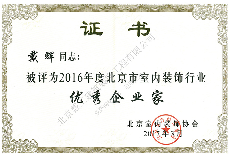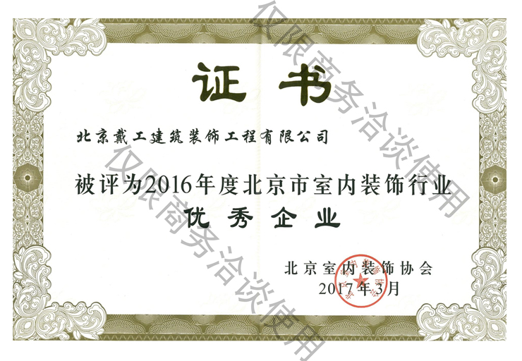 2016年度北京市室內(nèi)裝飾行業(yè)優(yōu)秀企業(yè)